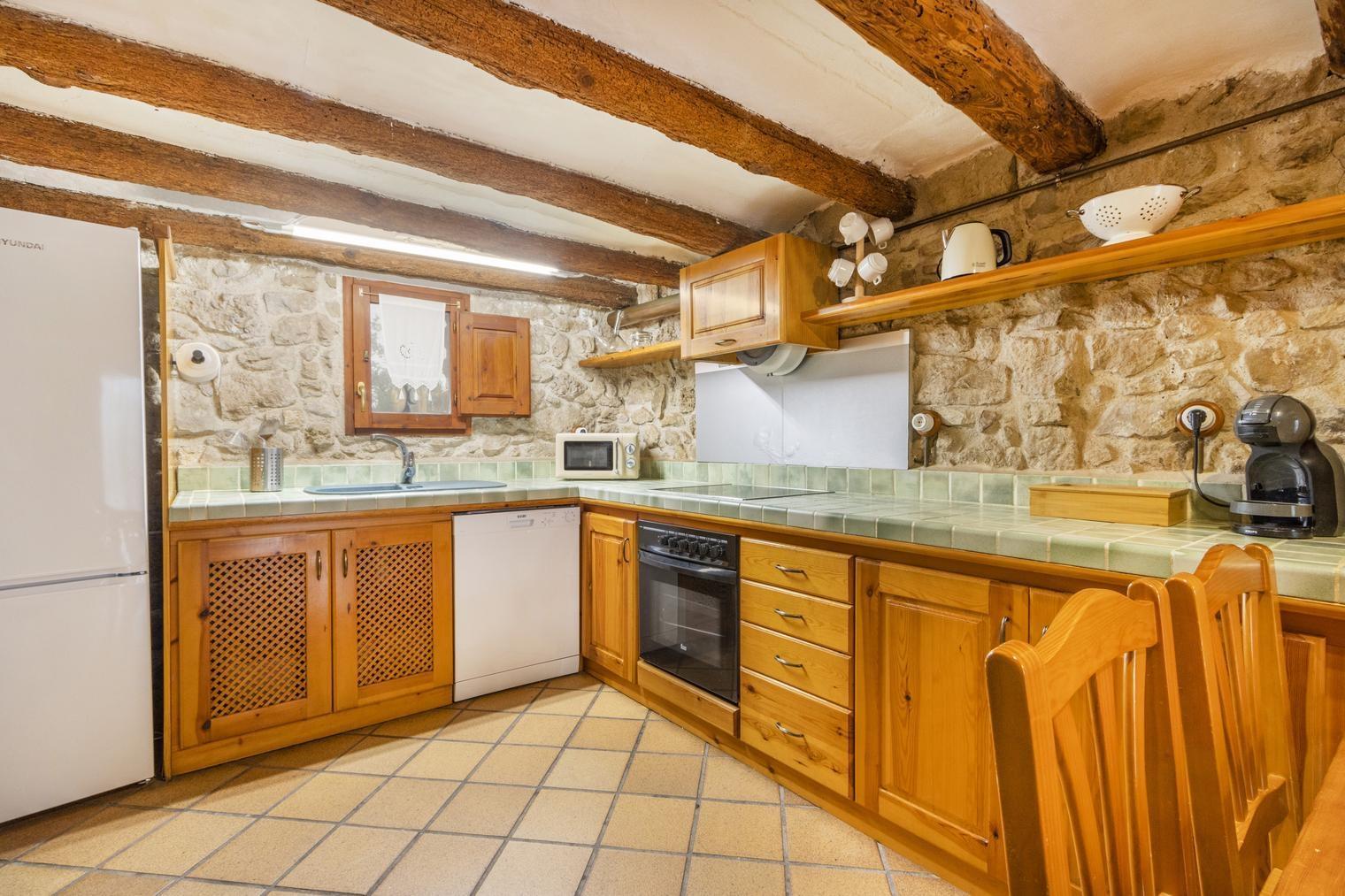 masía (s. XVI) con paredes de piedra y un interior totalmente reformado con madera, ideal para famílias y grupos de amigos, en el
